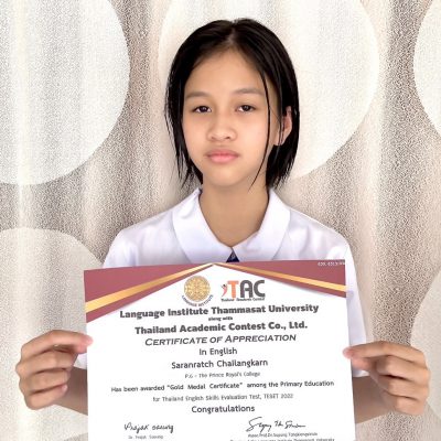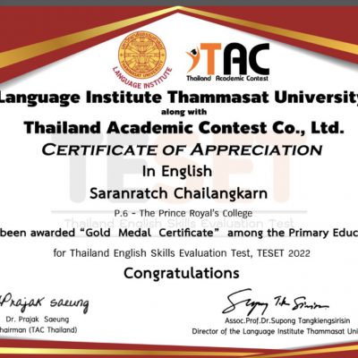 ที่ได้รับรางวัล Gold Medal Certificate จากโครงการประเมินทักษะภาษาอังกฤษระดับประเทศ ครั้งที่ 3 (TESET)