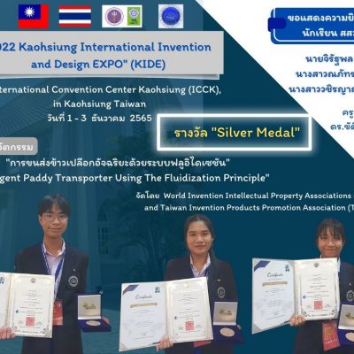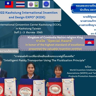 ขอแสดงความยินดีกับนักเรียนโรงเรียนปรินส์รอยแยลส์วิทยาลัย นายจิรัฐพล ใจคำสืบ , นางสาวณภัทร จันทร์ทอง และ นางสาววชิรญาณ์ รัตน์จันตา ม.4/3 นักเรียนในโปรแกรมส่งเสริมอัจฉริยภาพผู้เรียนด้านวิทยาศาสตร์และคณิตศาสตร์ โรงเรียนปรินส์รอยแยลส์วิทยาลัย ได้รับคัดเลือกจากสำนักงานวิจัยแห่งชาติ กระทรวงอุดมศึกษาวิทยาศาสตร์ วิจัยและนวัตกรรม เข้าร่วมประกวดและจัดแสดงผลงานวิจัยสิ่งประดิษฐ์และนวัตกรรม นานาชาติ ในงาน “2022 Kaohsiung International Invention and Design EXPO (KIDE)” ในระหว่างวันที่ 1 – 3 ธันวาคม 2565 ณ International Convention Center Kaohsiung (ICCK), in Kaohsiung, Taiwan จัดโดย World Invention Intellectual Property Associations (WIIPA) and Taiwan Invention Products Promotion Association (TIPPA)