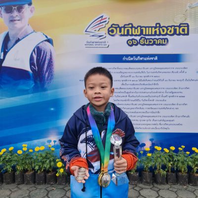 และได้คะแนนรวมเป็นลำดับที่ 3 รุ่นอายุ 6 ปี ชาย การแข่งขันว่ายน้ำ วันกีฬาแห่งชาติ ประจำปี 2565 ระหว่างวันที่ 17 – 18 ธันวาคม 2565 ณ สระว่ายน้ำสนามกีฬาสมโภชเชียงใหม่ 700 ปี