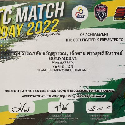 สังกัดทีม JEJU TAEKWONDO THAILAND จากการแข่งขัน STC MATCH DAY 2022 จัดโดย สายธารทิพย์ เทควันโด