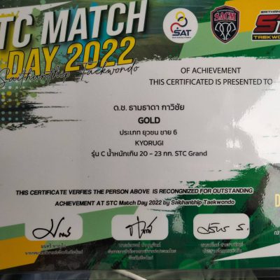 ขอแสดงความยินดีกับเด็กชายธามธาดา กาวิชัย อนุบาล 3/9 รางวัล GOLD จากการแข่งขันเทควันโดประเภทยุวชนชาย 6 ปี รุ่น C น้ำหนักเกิน 20 – 23 กิโลกรัม ในการแข่งขันกีฬาเทควันโด รายการ TAEKWONDO CHAMPIONSHIP STC MATCH DAY 2022 เมื่อวันที่ 25 ธันวาคม 2565 ณ มหาวิทยาลัยพายัพ จังหวัดเชียงใหม่