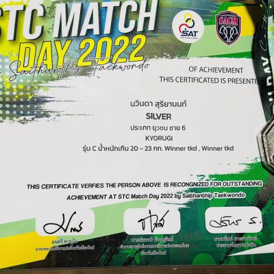 ขอแสดงความยินดีกับเด็กชายนวินดา สุริยานนท์ อนุบาล 3/9 รางวัล SILVER จากการแข่งขันเทควันโดประเภทยุวชนชาย 6 ปี รุ่น C น้ำหนักเกิน 20 – 23 กิโลกรัม ในการแข่งขันกีฬาเทควันโด รายการ TAEKWONDO CHAMPIONSHIP STC MATCH DAY 2022 เมื่อวันที่ 25 ธันวาคม 2565 ณ มหาวิทยาลัยพายัพ จังหวัดเชียงใหม่