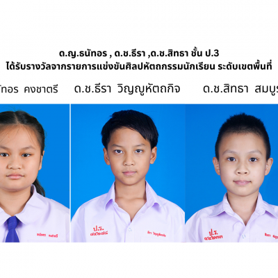 ขอแสดงความยินดีกับเด็กหญิงธนัทอร คงชาตรี ชั้น ป.3/2 ได้รับรางวัลชนะเลิศ (เหรียญทอง) การแข่งขันอัจฉริยภาพทางคณิตศาสตร์ ระดับชั้น ป.1 – 3 จากรายการแข่งขันศิลปหัตถกรรมนักเรียนระดับเขตพื้นที่การศึกษา สำนักงานเขตพื้นที่การศึกษาประถมศึกษาเชียงใหม่ เขต 1 ครั้งที่ 70 ปีการศึกษา2565 ณ โรงเรียนชุมชนบ้านบวกครกน้อย จ.เชียงใหม่ เมื่อวันที่ 15 ธันวาคม 2565 (ระดับเขตพื้นที่) ; เด็กชายธีรา วิญญูหัตถกิจ ชั้น ป.3/2 และเด็กชายสิทธา สมบูรณ์ ชั้น ป.3/7 ได้รับรางวัลเหรียญทองแดง การแข่งขันเครื่องร่อนแบบเดินตาม ป.1-3 จากรายการแข่งขันศิลปหัตถกรรมนักเรียนระดับเขตพื้นที่การศึกษา สำนักงานเขตพื้นที่การศึกษาประถมศึกษาเชียงใหม่ เขต 1 ครั้งที่ 70 ปีการศึกษา2565 ณ โรงเรียนสารภีพิทยาคม จ.เชียงใหม่ เมื่อวันที่ 15 ธันวาคม 2565 (ระดับเขตพื้นที่)