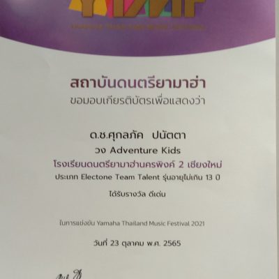 ที่ได้รับรางวัลดีเด่น จากการแข่งขัน Yamaha Thailand Music Festival ประเภท Electone Team Talent รุ่นอายุไม่เกิน 13 ปี