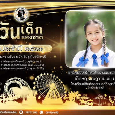 ที่ได้รับรางวัล สุดยอดเด็กแห่งปี สาขาพัฒนาเยาชน เนื่องในวันเด็กแห่งชาติ ประจำปี 2566 โดย สภาศิลปินสร้างสรรค์สังคม เมื่อวันที่ 8 มกราคม 2566