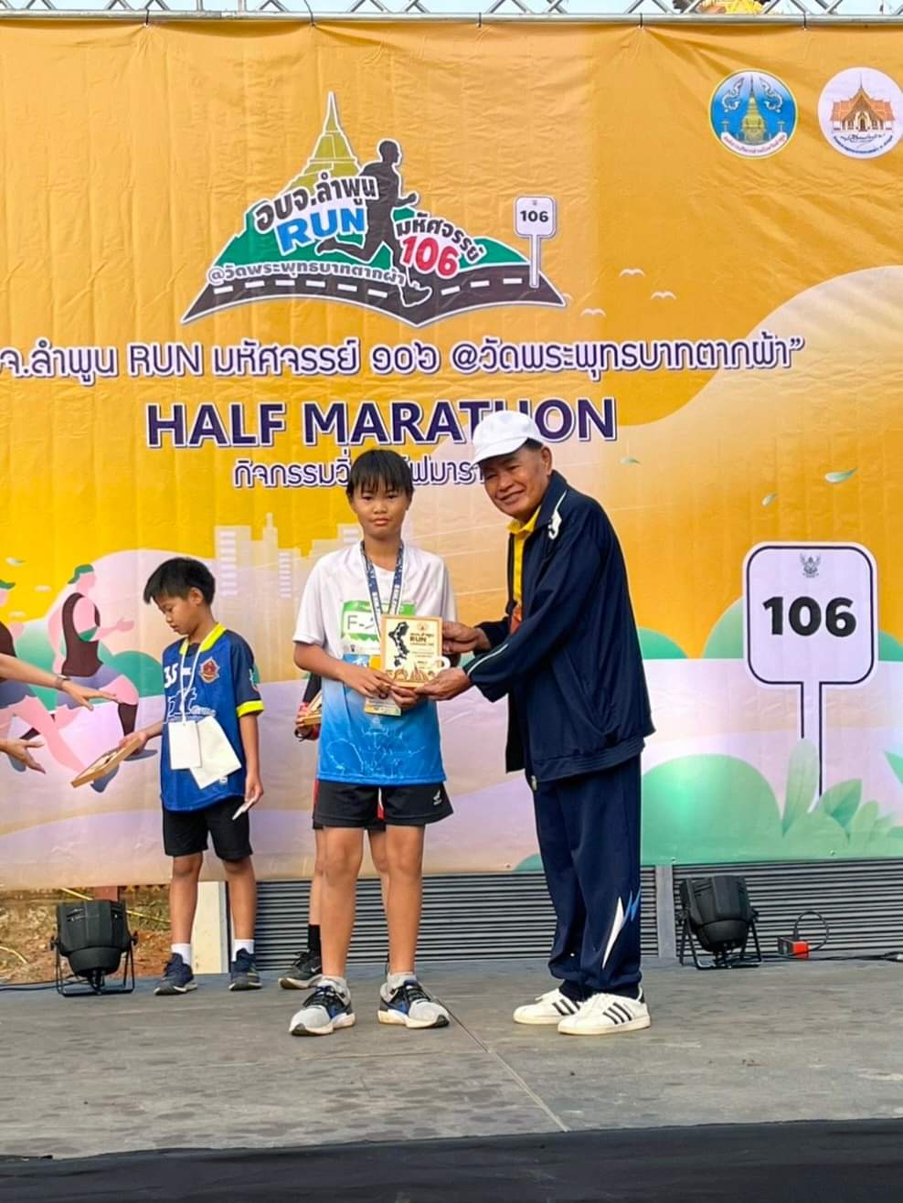 ที่ได้รับรางวัลชนะเลิศอันดับ 3 fun run ระยะทาง 5 กม. รุ่นอายุไม่เกิน 12 ปี ชาย “อบจ.ลำพูน RUN มหัศจรรย์ 106” ณ วัดพระพุทธบาทตากผ้า