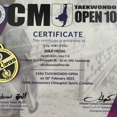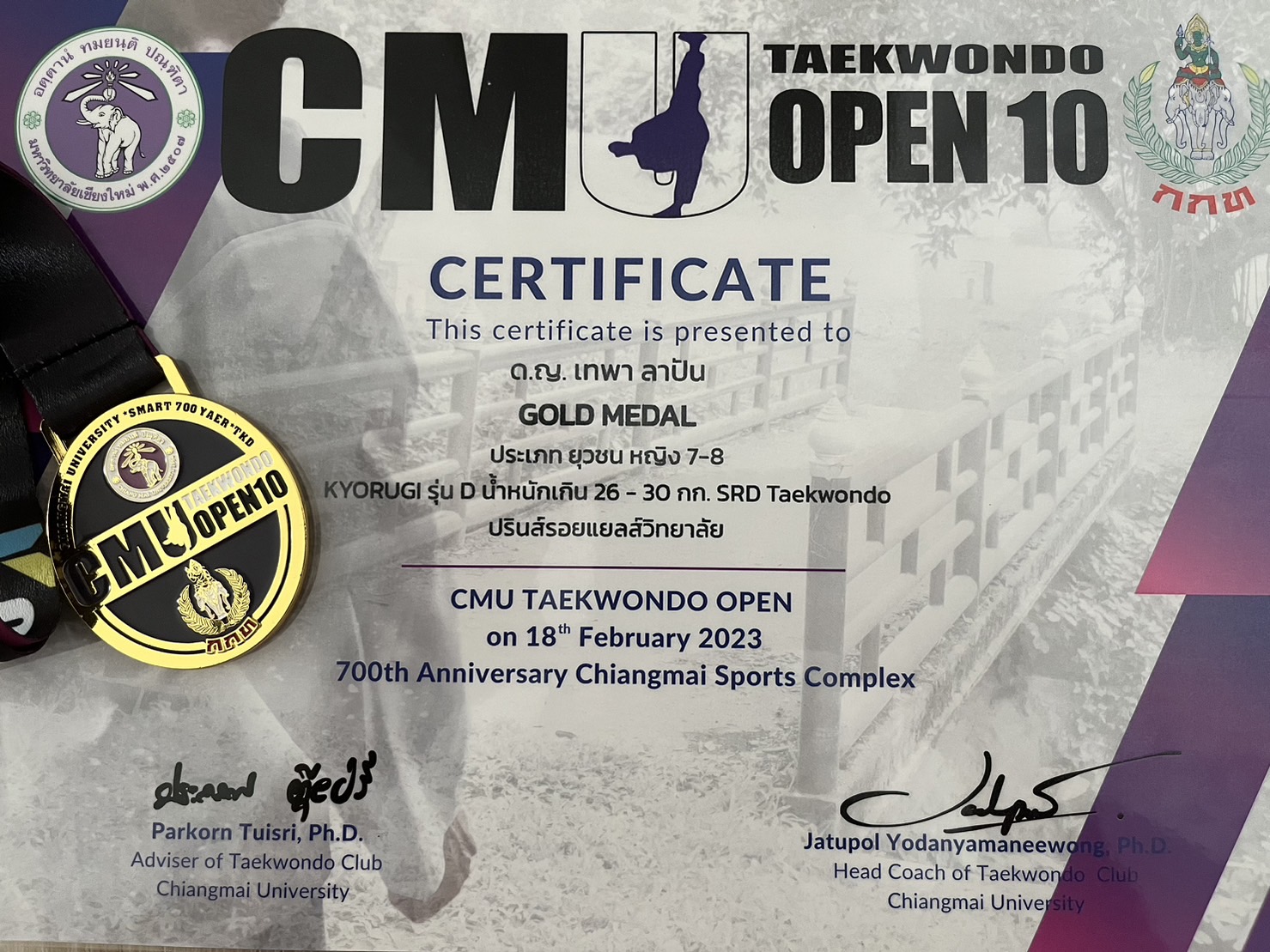 26-30 กก. ณ สนามกีฬาสมโภชเชียงใหม่ 700 ปี จังหวัดเชียงใหม่ เมื่อวันที่ 18 กุมภาพันธ์ 2566 จัดโดย Chiangmai University Taekwondo Club ระดับจังหวัด