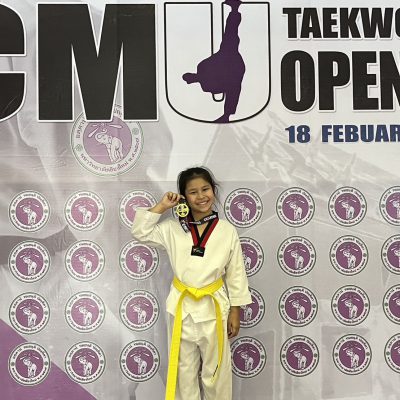 ขอแสดงความยินดีกับเด็กหญิงเทพา ลาปัน ชั้น ป. 3/3 เข้าร่วมการแข่งขันกีฬาเทควันโด รายการ CMU TAEKWONDO OPEN ครั้งที่ 10 ได้รับเหรียญทอง ประเภทยุวชนหญิง 7-8 Kyorugi รุ่น D น้ำหนักเกิน