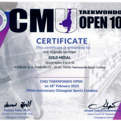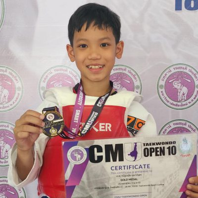 ด.ช.ณัฐดนัย ชั้น ป.3/6 ; เหรียญทอง รายการ CMU Taekwondo open 10