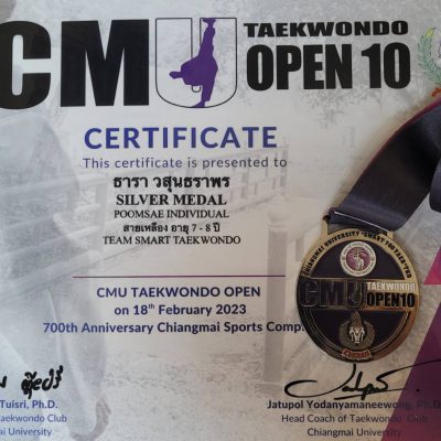 ขอแสดงความยินดีกับเด็กหญิงธารา วสุนธราพร ชั้น ป.1/3 เข้าร่วมการแข่งขันกีฬาเทควันโด CMU Taekwondo Open ครั้งที่ 10 ได้รับ 1 เหรียญเงิน ประเภทPoomsae Individual สายเหลือง อายุ 7-8ปี ณ สนามสมโภชเชียงใหม่ 700 ปี เมื่อวันที่ 18 กุมภาพันธ์ 2566 จัดโดย Chiangmai University Taekwondo Club ระดับจังหวัด