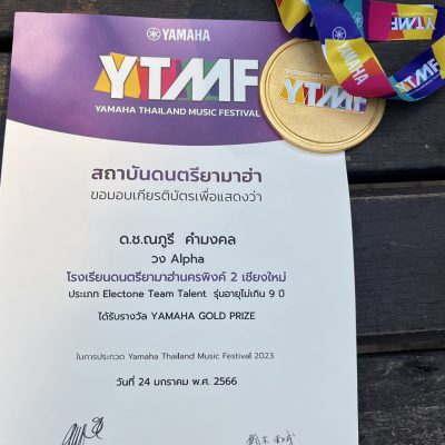 ขอแสดงความยินดีกับเด็กชายณภูรี คำมงคล ชั้น ป 2/1  เข้าร่วมการแข่งขันรายการ Yamaha Thailand Music Festival 2023  ได้รับรางวัล YAMAHA GOLD PRIZE ประเภท Electone Team Talent รุ่นอายุไม่เกิน 9 ปี ณ สยามกลการเชียงใหม่  เมื่อวันที่ 28 มกราคม 2566  จัดโดยสถาบันดนตรียามาฮ่า  ระดับภาค