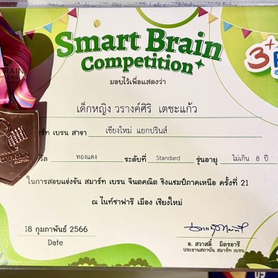 ขอแสดงความยินดีกับเด็กหญิงวรางค์ศิริ เตชะแก้ว อนุบาล 3/7 ได้รับรางวัล ทองแดง ระดับ Standard รุ่นอายุไม่เกิน 8 ปี ในการสอบแข่งขัน สมาร์ท เบรน จินตคณิต ชิงแชมป์ภาคเหนือ ครั้งที่ 21 ณ ไนท์ซาฟารี เมือง เชียงใหม่ วันที่ 18 กุมภาพันธ์ 2566