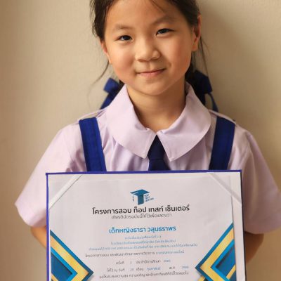 ด.ญ.ธารา ชั้น ป.1/3 ; เหรียญเงิน (ภาษาอังกฤษ) โครงการทดสอบและพัฒนาศักยภาพทางวิชาการ