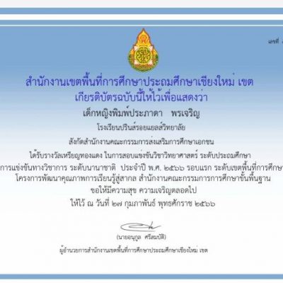 ขอแสดงความยินดีกับ เด็กหญิงพิมพ์ประภาดา พรเจริญ นักเรียนชั้นประถมศึกษาปีที่ 5/2
