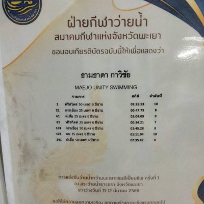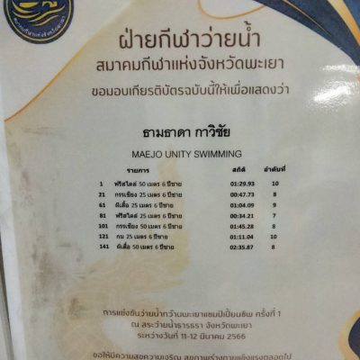 ขอแสดงความยินดีกับเด็กชายธามธาดา กาวิชัย ชั้น ป.1 เข้าร่วมการแข่งขันว่ายน้ำรายการว่ายน้ำ กว๊านพะเยา แชมป์เปี้ยนชิพ ครั้งที่1.. ได้รับ 2 เหรียญทอง แตะขาโฟม , ท่าผีเสื้อ ระยะ 25 เมตร , 2 เหรียญเงิน ท่าฟรีสไตล์ ระยะ 25 เมตร , ท่ากรรเชียง ระยะ 50 เมตร , 3 เหรียญทองแดง ท่ากรรเชียง ระยะ 25 เมตร , ท่ากบ ระยะ 25 เมตร , ท่าผีเสื้อระยะ 25 เมตร ณ สระว่ายน้ำธารธรา จังหวัดพะเยา ระหว่างวันที่ 11 – 12 มีนาคม 2566 จัดโดยสมาคมกีฬาว่ายน้ำ จังหวัดพะเยา ระดับจังหวัด