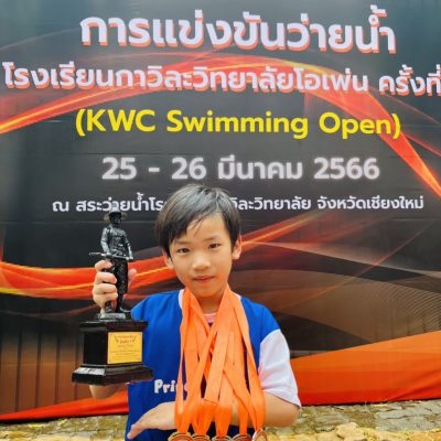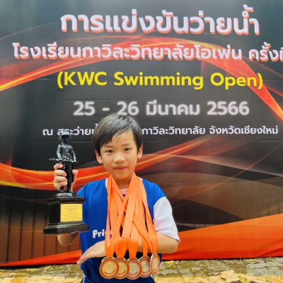 ขอแสดงความยินดีกับเด็กชายนวินดา สุริยานนท์ ชั้น ป.1/3 เข้าร่วมการแข่งขันว่ายน้ำโรงเรียนกาวิละวิทยาลัยโอเพ่น (KWC Swimming Open) ครั้งที่ 1 ได้รับ 2เหรียญทอง ท่ากบ ระยะ 50 เมตร , เตะเท้าฟรีสไตส์ ระยะ 50 เมตร / 2 เหรียญเงิน ท่าฟรีสไตส์ ระยะ 50 เมตร , ท่ากรรเชียง ระยะ 50 เมตร / 1 เหรียญทองแดง ท่าผีเสื้อ ระยะ 50 เมตร และ รางวัลชนะเลิศอันดับที่ 1 รุ่นอายุ 7 ปีชาย ณ สระว่ายน้ำโรงเรียนกาวิละวิทยาลัย เชียงใหม่ เมื่อวันที่ 25-26 มีนาคม 2566 จัดโดย โรงเรียนกาวิละวิทยาลัย ระดับจังหวัด