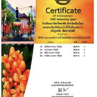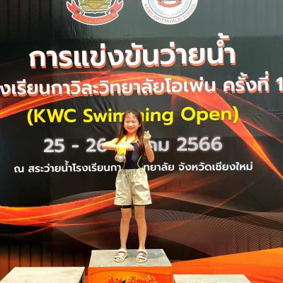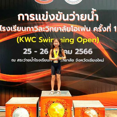 ขอแสดงความยินดีกับเด็หญิงขวัญหทัย สัตยาสวัสดิ์ ชั้น ป.2/1 เข้าร่วมการแข่งขันว่ายน้ำ รายการโรงเรียนกาวิละวิทยาลัยโอเพ่น ครั้งที่1(KWC Swimming. Open 1) ได้รับรางวัล ชนะเลิศถ้วยรวมอันดับ1 รุ่น อายุ 7 ปี หญิง , 5 เหรียญทอง ได้แก่ ท่าฟรีสไตล์ ระยะ 50 เมตร , ท่ากบ ระยะ 50 เมตร , ท่าผีเสื้อ ระยะ 50 เมตร , ท่ากรรเชียง ระยะ 50 เมตร และ เตะขาฟรีสไตล์ ระยะ 50 เมตร ณ โรงเรียน กาวิละ วิทยาลัย เมื่อวันที่ 25-26.มีนาคมปี พ.ศ.2566 จัดโดยโรงเรียนกาวิละวิทยาลัย ระดับจังหวัด