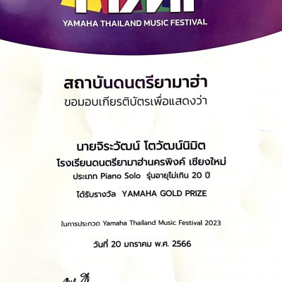 ขอแสดงความยินดีกับ นายจิระวัฒน์ โตวัฒน์นิมิต  ชั้น ม.4  ที่ได้รับรางวัล Gold Prize  แข่งขันเปียโนเดี่ยว รุ่นอายุไม่เกิน 22 ปี  ในการแข่งขันรายการ Yamaha Thailand Music Festival 2023 รอบคัดเลือกภาคเหนือ เป็นตัวแทนของจังหวัดเชียงใหม่ เพื่อเข้าไปแข่งขันในรอบชิงชนะเลิศ ระดับประเทศในเดือนพฤษภาคม 2566  จัดการแข่งขันโดย สถาบันดนตรียามาฮ่า