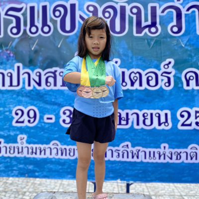 ขอแสดงความยินดีกับเด็กหญิงรัชยา ทรงอภิวัฒน์กุล ชั้น ป.2/6 เข้าร่วมการแข่งขันว่ายน้ำลำปางสปริ้นเตอร์ ประจำปี 2566 ได้รับ 3 เหรียญทอง รุ่น 8 ปี หญิง เตะเท้าฟรีสไตล์ ระยะ 25 เมตร , ท่าผีเสื้อ ระยะ 50 เมตร , ผลัดฟรีสไตล์ 2*25 เมตร / 2 เหรียญทองแดง ท่ากบ ระยะ 50 เมตร , ท่ากบ ระยะ 25 เมตร ณ สระว่ายน้ำมหาวิทยาลัยการกีฬาแห่งชาติ วิทยาเขตลำปาง อ.เมือง จ.ลำปาง ระหว่างวันที่ 29-30 เมษายน 2556 จัดโดย มหาวิทยาลัยการกีฬาแห่งชาติ วิทยาเขตลำปาง ระดับ จังหวัด