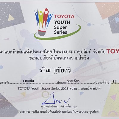 ชนะเลิศ ชายคู่รุ่นอายุต่ำกว่า 11 ปี การแข่งขัน TOYOTA Youth Super Series 2023 สนามที่ 1 เก็บคะแนนสะสม Level 4 ระดับประเทศ