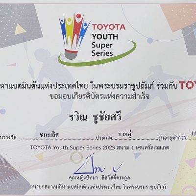 ชนะเลิศ ชายคู่รุ่นอายุต่ำกว่า 11 ปี การแข่งขัน TOYOTA Youth Super Series 2023 สนามที่ 1 เก็บคะแนนสะสม Level 4 ระดับประเทศ