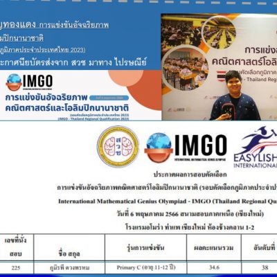 จากการแข่งขันอัจฉริยภาพคณิตศาสตร์โอลิมปิกนานาชาติ International Mathematical Genius Olympiad (IMGO)