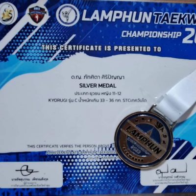 ที่ได้รับรางวัลเหรียญเงินรุ่นยุวชนหญิง 11-12 ปี ประเภทต่อสู้เดี่ยว