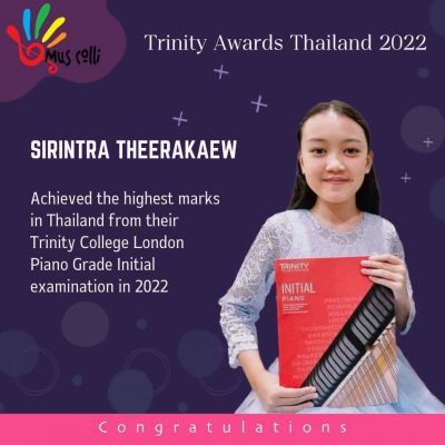 จากการการแข่งขัน Trinity Awards Thailand 2022 จัดโดย TRINITY COLLEGE LONDON THAILAND เมื่อวันที่ 25 มีนาคม 2566