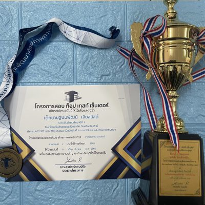 3. รางวัลเกียรติบัตรเหรียญทอง และโลห์รางวัลคะแนนอันดับ4 ของประเทศ ในการสอบแข่งขันวิชาภาษาอังกฤษ ระดับมัธยมศึกษาปีที่1 จัดโดยโครงการสอบ ท็อปเทสท์ เซ็นเตอร์ สอบวันที่ 18-22 กุมภาพันธ์ 2566 ออนไลน์