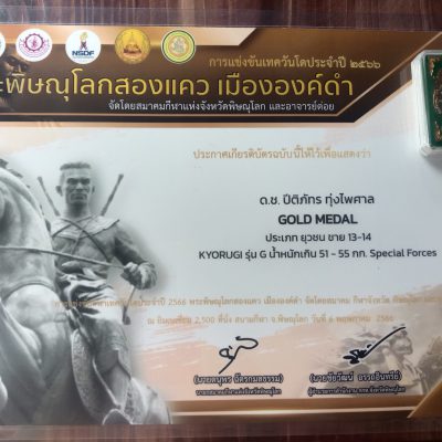 - เด็กชายปีติภัทร ทุ่งไพศาล ได้รับรางวัลชนะเลิศเหรียญทอง ประเภท ต่อสู้ ยุวชนชาย อายุ 13 – 14 ปี