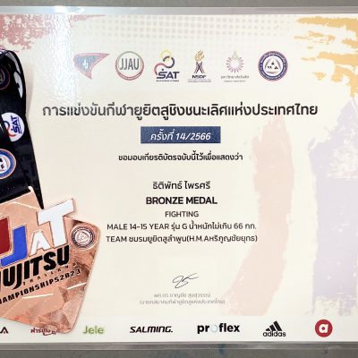 รางวัลเหรียญทองแดง การแข่งขันกีฬายูยิตสูชิงชนะเลิศแห่งประเทศไทยครั้งที่ 14 – 2566