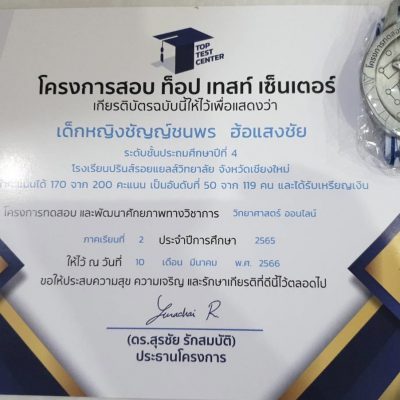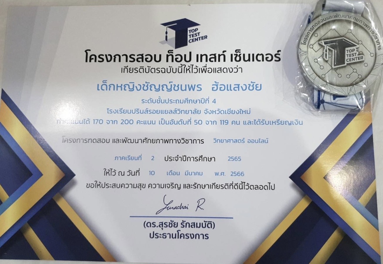 ขอแสดงความยินดีกับเด็กหญิงชัญญ์ชนพร ฮ้อแสงชัย ระดับชั้นประถมศึกษาปีที่ 5/4