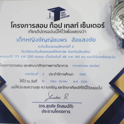 ที่ได้รับเหรียญเงินวิชาภาษาอังกฤษและเหรียญเงินวิชาวิทยาศาสตร์
