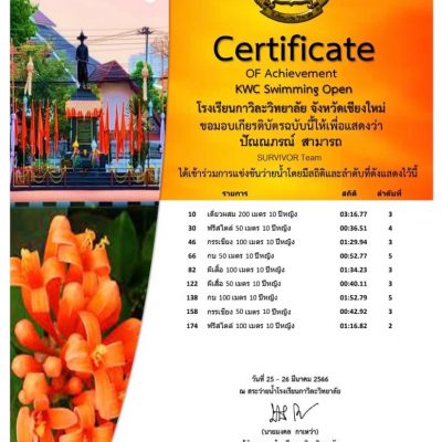 ระหว่างวันที่ 25-26 มีนาคม 2556 ณ สระว่ายน้ำโรงเรียนกาวิละวิทยาลัย จังหวัดเชียงใหม่