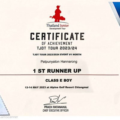 ขอแสดงความยินดีกับด.ช. ปัฑค์ปัณญธร หาญณรงค์ ชั้นป.3/1 ได้รับรางวัลรองชนะเลิศ ระดับภูมิภาค(ภาคเหนือ) รุ่นBOY -E จากการแข่งขันกอล์ฟ จัดโดยสมาคมกอล์ฟกีฬาเยาวชนไทย Thailand Junior Development Tour จัดที่สนามกอล์ฟอัลไพล์ กอล์ฟรีสอร์เชียงใหม่ ในวันที่ 13-14 พฤษภาคม 2566