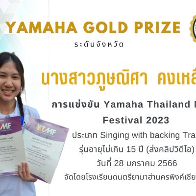 – รางวัล YAMAHA GOLD PRIZE รายการแข่งขัน Yamaha Thailand Music Festival 2023 ประเภทSinging with backing Track รุ่นอายุไม่เกิน 15 ปี (ส่งคลิปวิดีโอ) เมื่อวันที่ 28 มกราคม 2566 จัดโดยโรงเรียนดนตรียามาฮ่านครพิงค์เชียงใหม่ นักเรียนเป็นตัวแทนภาคเหนือ เพื่อเข้ารับการแข่งขันรอบชิงชนะเลิศถ้วยพระราชทาน ระดับประเทศต่อไป