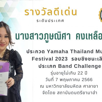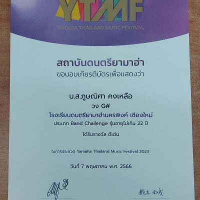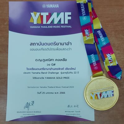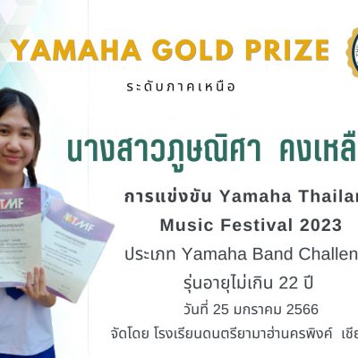 – รางวัล YAMAHA GOLD PRIZE รายการแข่งขัน Yamaha Thailand Music Festival 2023 (รอบคัดเลือกตัวแทนภาคเหนือ) (ส่งคลิปวิดีโอ) ประเภท Yamaha Band Challenge รุ่นอายุไม่เกิน 22 ปี วง G# (จีชาร์ป) ตำแหน่ง : นักร้องนำ เมื่อวันที่ 25 มกราคม 2566 จัดโดย โรงเรียนดนตรียามาฮ่านครพิงค์ เชียงใหม่ นักเรียนจะได้เข้าแข่งขันรอบชิงชนะเลิศชิงถ้วยพระราชทาน ในเดือนตุลาคม