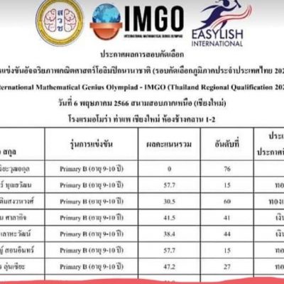 ที่ได้รับรางวัลรางวัลเกียรติบัตรเหรียญทอง จากการการแข่งขันอัจฉริยภาพคณิตศาสตร์โอลิมปีกนานาชาติ International Mathematical Genius Olympiad (IMGO) รอบ Thailand Regional Qualification 2023