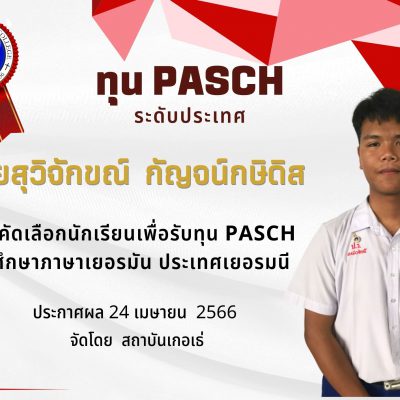 นายสุวิจักขณ์  กัญจน์กษิดิส  รับทุน Pasch ไปศึกษาภาษาเยอรมัน