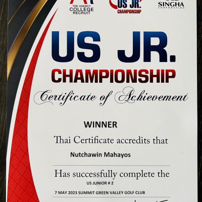 จากการแข่งขันรายการ US JR.Championship 2023 ณ Summit Green Valley Golf Club ระหว่างวันที่ 7 พฤษภาคม 2023