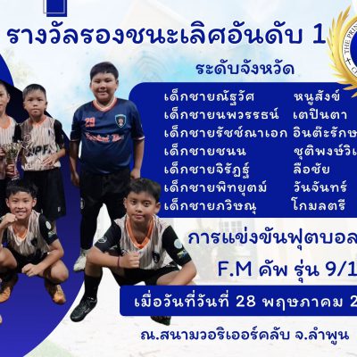 ที่ได้รับรางวัลรองชนะเลิศอันดับ 1 จากการแข่งขันรายการฟุตบอล 7คน F.M คัพ รุ่น 9/10ปี