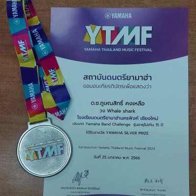 ขอชื่นชมและร่วมแสดงความยินดีกับ เด็กชายภูษณสิทธิ์ คงเหลือ นักเรียนชั้นมัธยมศึกษาปีที่ 1 ที่ได้รับรางวัล YAMAHA SILVER PRIZE จากการแข่งขันรายการ Yamaha Thailand Music Festival 2023 (ระดับจังหวัด) ประเภท Yamaha Band Challenge รุ่นอายุไม่เกิน 15 ปี (ส่งคลิปวิดีโอ) ชื่อวง Whale Shark (เล่นกีต้าร์ไฟฟ้า) จัดโดยโรงเรียนดนตรียามาฮ่านครพิงค์เชียงใหม่ เมื่อวันที่ 25 มกราคม 2566
