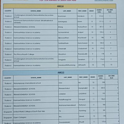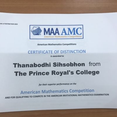 ขอชื่นชมและแสดงความยินดีกับ นายธนบดี สีห์โสภณ ม.4/7 ที่ได้รับโล่รางวัลอันดับที่ 8 ระดับนานาชาติ จากการแข่งขัน Southeast Asian American Invitational Mathematics Examination (SEA-AIME 2023) แข่งขันเมื่อวันที่ 16 กุมภาพันธ์ 2566 ณ อาคาร Enconcept Chiang Mai เอ็นคอนเซ็ปท์ เชียงใหม่ ประกาศผลเมื่อวันที่ 30 เมษายน 2566 จัดโดย American Mathematics Competitions