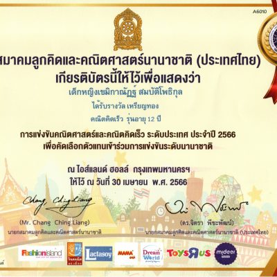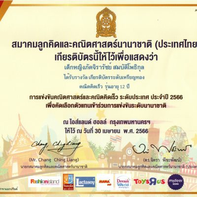 ขอชื่นชมและร่วมแสดงความยินดีกับ เด็กหญิงเขมิกาณัฏฐ์ สมบัตโพธิกุล นักเรียนชั้นมัธยมศึกษาปีที่ 1 ที่ได้รับรางวัลเหรียญทอง คณิตคิดเร็ว รุ่นอายุ 12 ปี และ เด็กหญิงภัคจิรารัชย์ สมบัติโพธิกุล นักเรียนชั้นมัธยมศึกษาปีที่ 1 ที่ได้รับรางวัลเกียรติบัตรระดับเหรียญทอง คณิตคิดเร็ว รุ่นอายุ 12 ปี จากการแข่งขันคณิตศาสตร์และคณิตคิดเร็ว ชิงแชมป์ประเทศไทย เพื่อคัดเลือกตัวแทนเข้าร่วมการแข่งขันระดับนานาชาติ ประจำปี 2566 จัดโดยสมาคมลูกคิดและคณิตศาสตร์นานาชาติ (ประเทศไทย) ณ แฟชั่นไอส์แลนด์ ฮอลล์ ชั้น 3 ศูนย์การค้าแฟชั่น ไอส์แลนด์ กรุงเทพ ฯ เมื่อวันอาทิตย์ที่ 30 เมษายน พ.ศ.2566