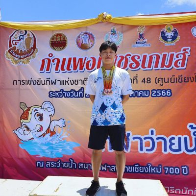 รางวัลที่ได้รับ เหรียญเงิน กบ 50 เมตร ชาย ผ่านการคัดเลือกเข้าร่วมกีฬาเเห่งชาติ ครั้งที่ 48 “กาญจนบุรีเกมส์”
