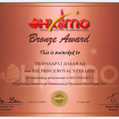 ขอชื่นชมและร่วมแสดงความยินดีกับเด็กชายฐปนพัฒน์ เจียสวัสดิ์ นักเรียนชั้นมัธยมศึกษาปีที่ 2 ที่ได้รับรางวัลเหรียญทองแดง จากการแข่งขันรายการคณิตศาสตร์โอลิมปิกนานาชาติ HKIMO HEAT ROUND 2023 รอบคัดเลือกซึ่งมีสิทธิ์ไปสอบต่อรอบ Final Round จัดโดย Olympiad Champion Education Center (OCEC) ซึ่งได้รับการรับรองจากกระทรวงศึกษาธิการฮ่องกง (สอบออนไลน์) เมื่อวันที่ 14 พฤษภาคม 2566