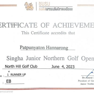 เด็กชายปัฑค์ปัณญธร หาญณรงค์ ชันประถมศึกษาปีที่ 3/1 ได้รับรางวัลรองชนะเลิศ อันดับ1 รุ่น Boy-E จากการแข่งขันกอล์ฟเยาวชน ภาคเหนือ จัดโดยชมรมกอล์ฟเยาวชนสิงห์ภาคเหนือตอนบน (Singha Junior Northern Golf Open ) ณ สนามNorth Hill Golf Club เชียงใหม่ เมื่อวันที่ 4 มิถุนายน 2566 (ระดับภาค)