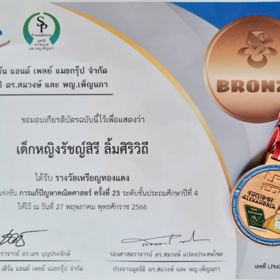3. รางวัลเหรียญทองแดง การแข่งขันการแก้ปัญหาคณิตศาสตร์ ครั้งที่ 23