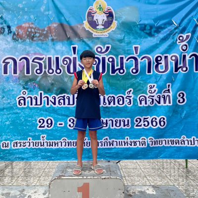 จากการแข่งขันว่ายน้ำ ลำปางสปิ้นส์เตอร์ ครั้งที่ 3 จัดโดย มหาวิทยาลัยการกีฬาแห่งชาติ วิทยาเขตลำปาง เมื่อวันที่ 29 – 30 เมษายน 2566