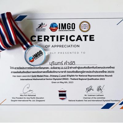ขอชื่นชมและร่วมแสดงความยินดีกับ เด็กชายบุรินทร์ คำขัติ นักเรียนชั้นมัธยมศึกษาปีที่ 1 ที่ได้รับรางวัลรางวัลเหรียญทอง ในระดับภูมิภาค และ ผ่านเข้ารอบไปแข่งขันระดับประเทศ ในรอบถัดไป จากการแข่งขันคณิตศาสตร์โอลิมปิกนานาชาติ รายการ International Mathematical Genius Olympiad (IMGO)
